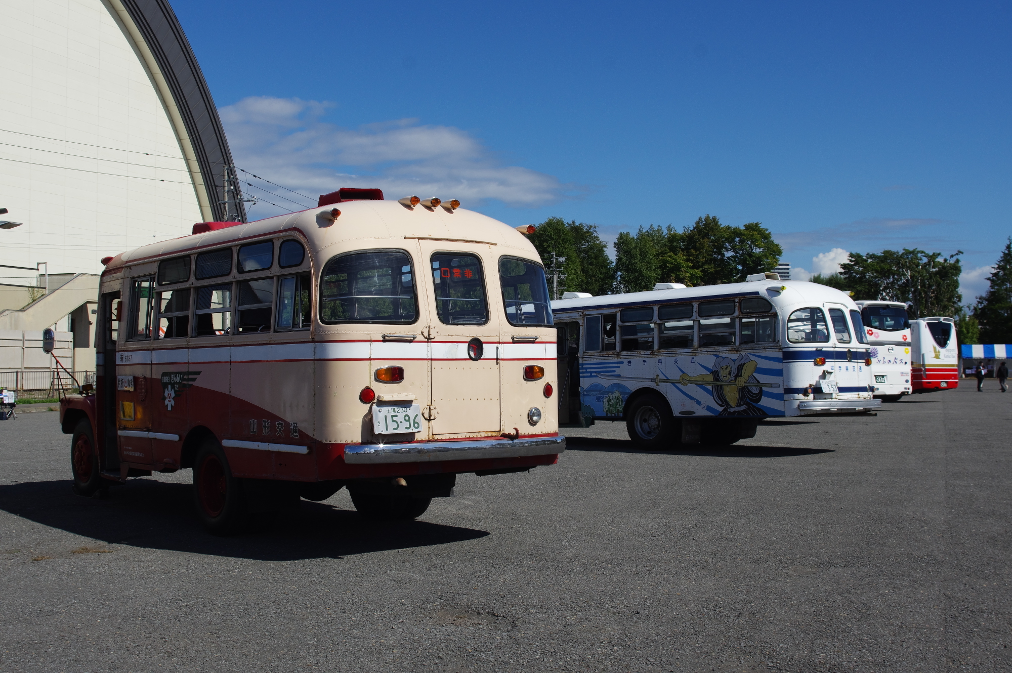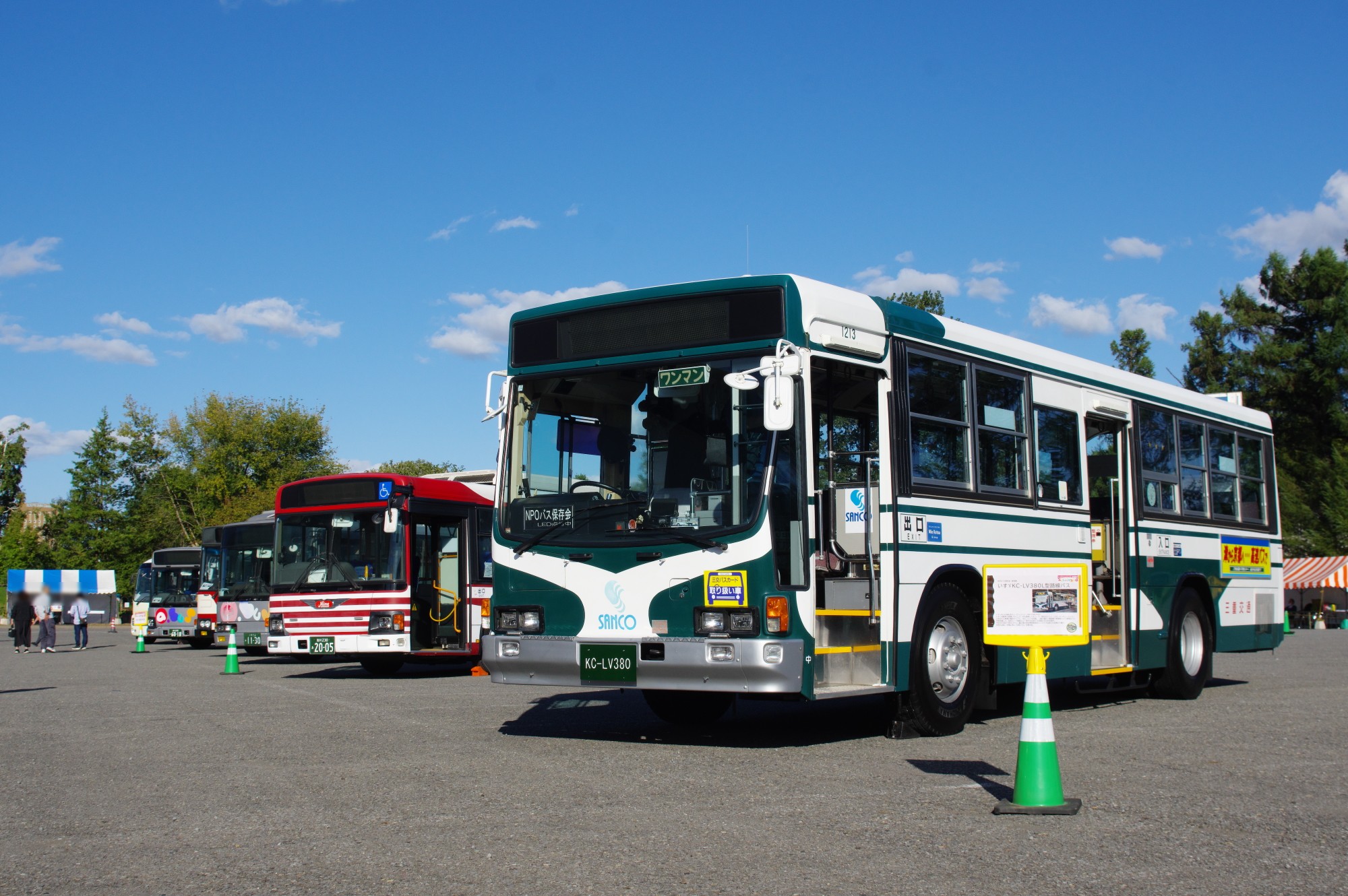 展示車両の一例。手前の車両はNPOバス保存会の所有する元三重交通のいすゞキュービック。
