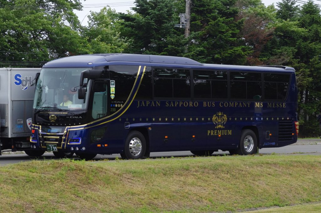 【エムズメッセ】799 札幌230あ799 2025.11.28 北海道内のバス札幌ナンバー 2025年式いすゞエムズメッセ自社発注車 799 札幌230あ799(エムズメッセ 2025年式 いすゞガーラ/2PG-RU1ASDJ) 2025年6月 江別市内 撮影:MAPBUS 2025年に導入された車両。 車体は各所に金色の装飾が施され、ヘッドライトを「ナイトスター」に交換するなどこれまで以上に磨きのかかったデザインとなっているのが特徴である。 同時期に複数台が導入されている模様。