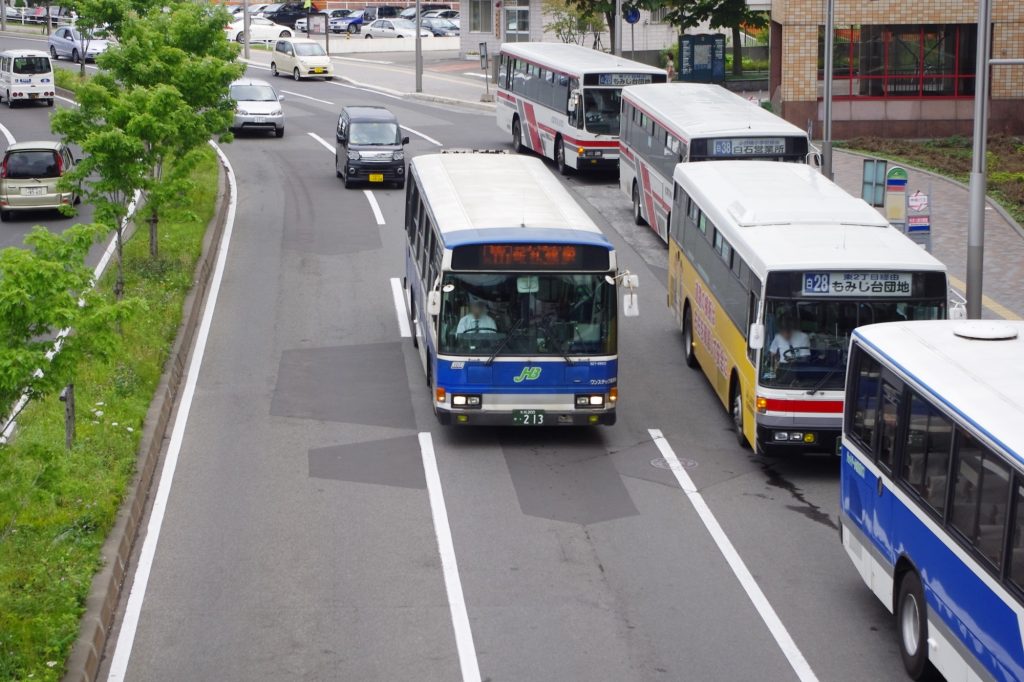 この他にもテクノパークへの通勤路線、管内の私立学校スクールバスも運行されており、朝の新札幌駅では長尺シャーシのワンステップバスがひっきりなしに出発していく光景が見られる。