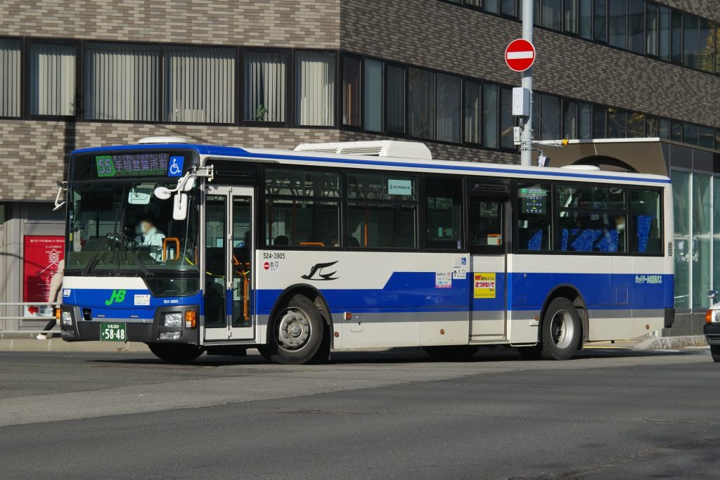 【ジェイ・アール北海道バス】524-3905 札幌200か5848 2025.07.092025.11.29 ジェイ・アール北海道バス三菱ふそう 2024年式三菱ふそう自社発注車 524-3905 札幌200か5848(ジェイ・アール北海道バス手稲営業所 2024年式 ふそうエアロスター/2PG-MP35FP) 2025年11月 札幌市中央区 撮影:MAPBUS 2023年度導入車。 当年度ではエアロスターは3台のみの導入であり、前年度とは異なり長尺シャーシが選択された。 手稲営業所に所属し、管内の路線にて運行されている。 2025年6月 札幌市中央区 撮影:MAPBUS 2025年11月29日画像追加:MAPBUS