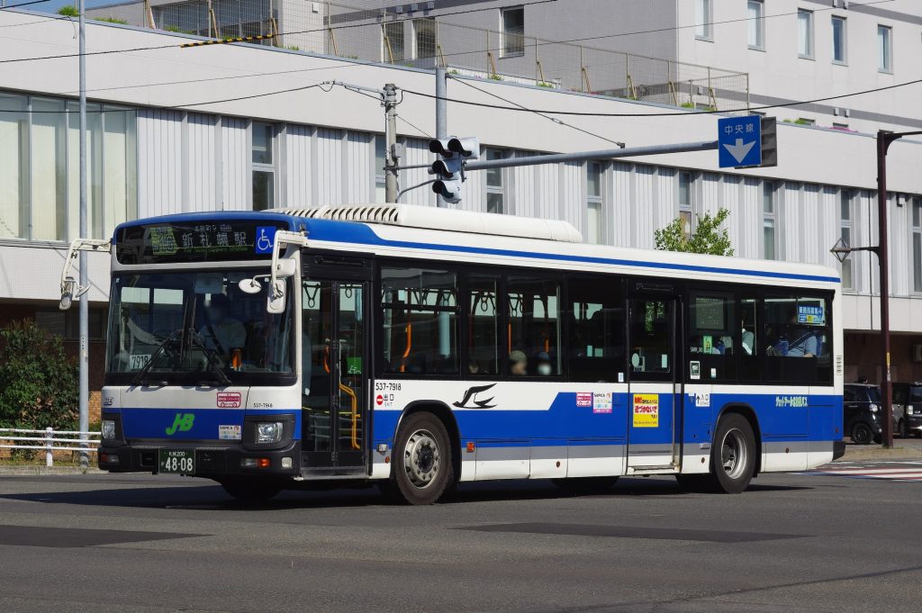【ジェイ・アール北海道バス】537-7918 札幌200か4808 2025.11.18 ジェイ・アール北海道バス日野 2017年式日野自社発注車 537-7918 札幌200か4808(ジェイ・アール北海道バス厚別営業所 2017年式 日野ブルーリボン/2PG-KV290Q2) 2025年7月 札幌市厚別区 撮影:MAPBUS 2017年度導入車。厚別営業所にはブルーリボンが4台(4808~4811)導入された。 例年通り、二人掛け座席主体の郊外型の車内レイアウトである。 導入以来厚別営業所に在籍する。 2024年に行先表示機がフルカラー式に交換された。