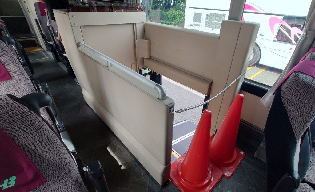 車いすで乗り込む際は、事前に前方の座席をスライドさせて車いすの固定スペースを設ける。