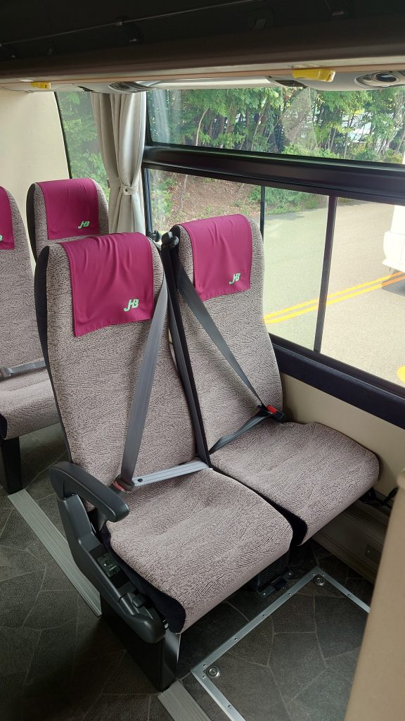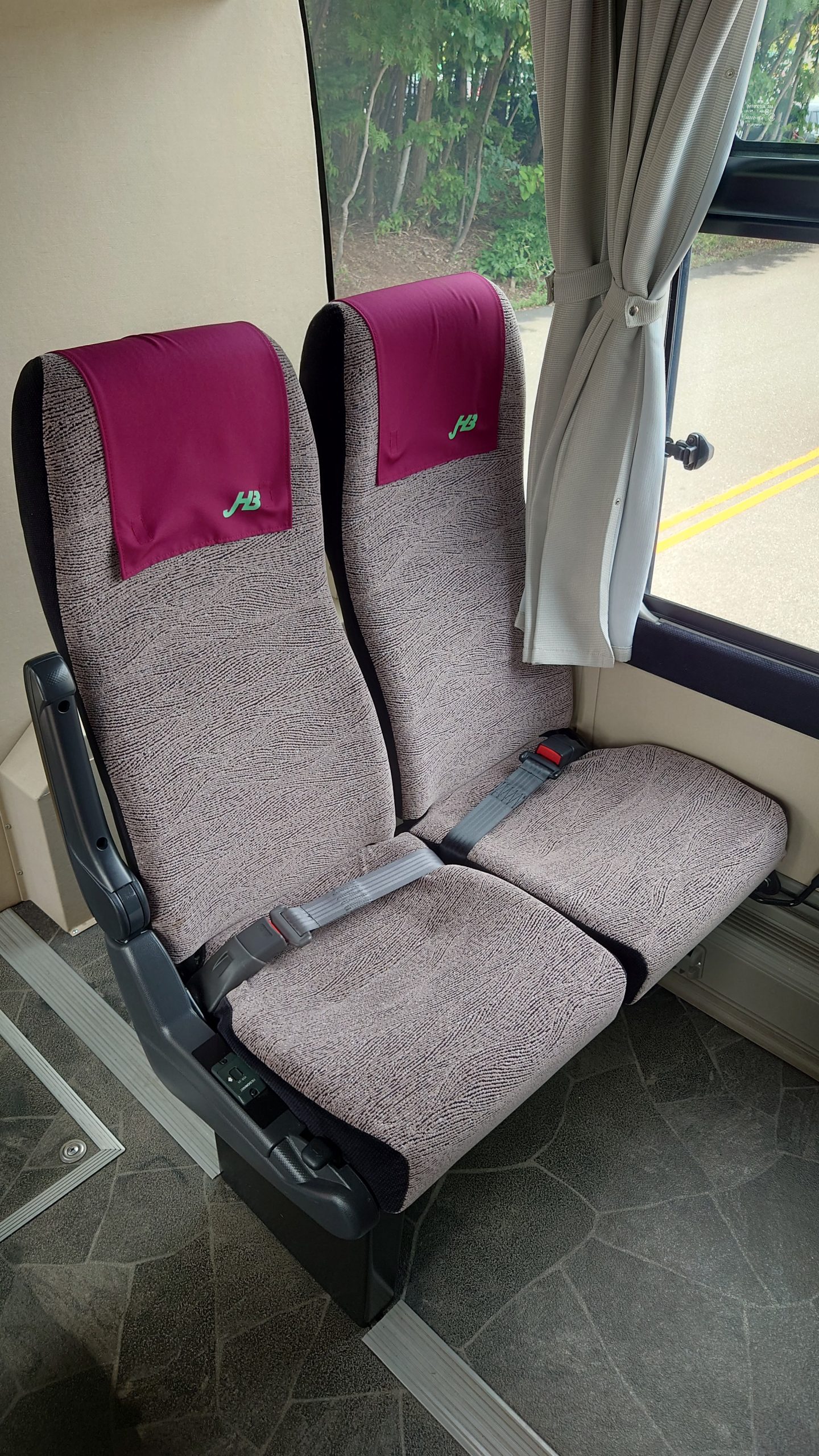 エレベーター直後の座席は三点式シートベルトとなっている。