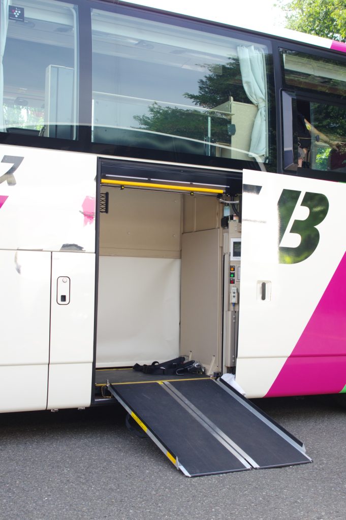 後部トイレ・車いす用エレベーターを装備する都市間高速車である。