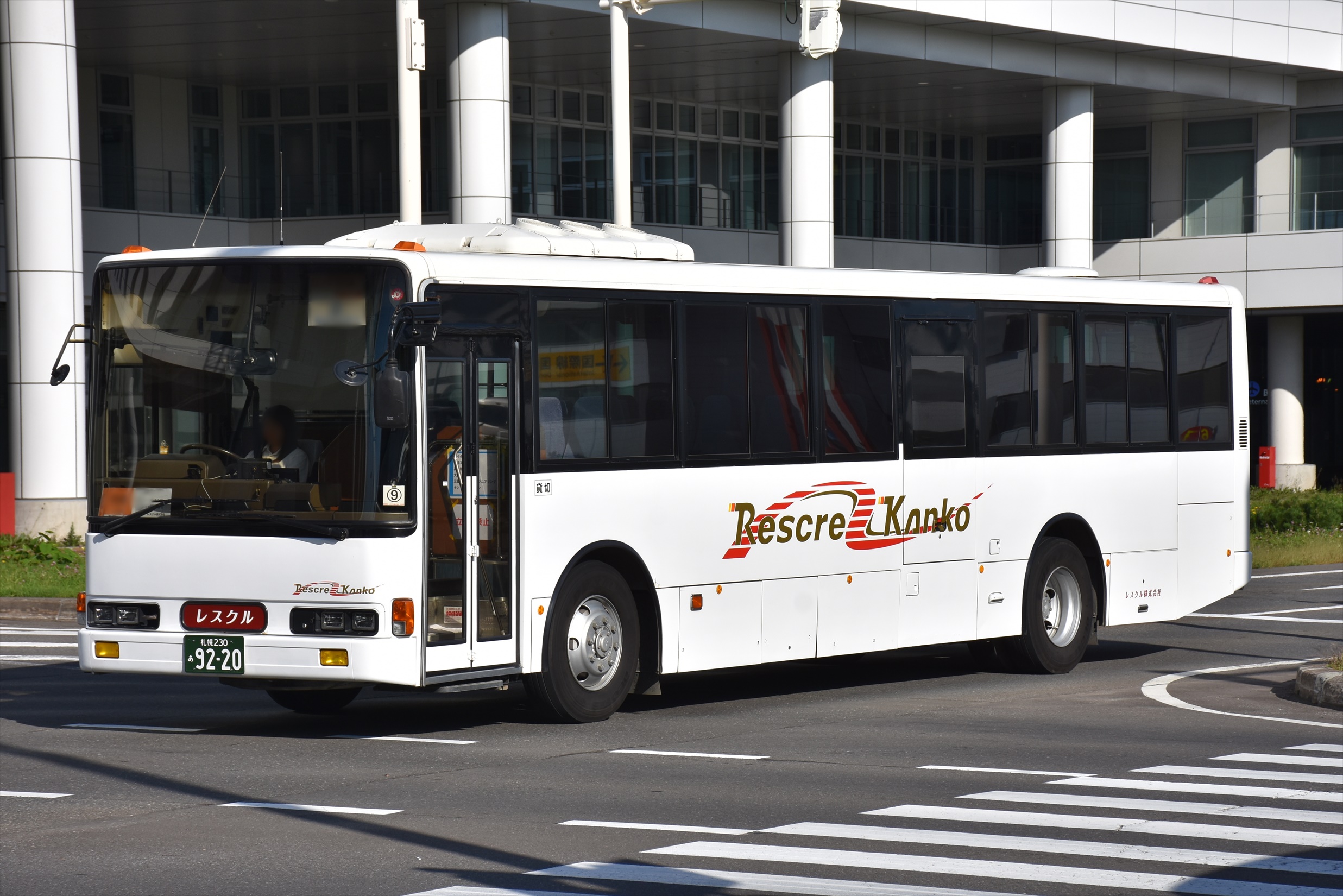 【レスクル】札幌230あ9220 2025.10.23 北海道内のバス札幌ナンバー 2005年式レスクル三菱ふそう元関東自動車移籍車 札幌230あ9220(レスクルさっぽろ営業所 2005年式 三菱ふそうエアロスター/KL-MP35JP) 2024年9月 千歳市 撮影:OTB 2005年に関東自動車(埼玉県)が新製導入した車両。 レスクルへ移籍後は愛知県内にて使用されていたが、2024年夏にさっぽろ営業所へ転属した際、札幌230あ9220に再登録された。 中央部にリフトが搭載されている。 貸切登録となっており、主に企業輸送で使用されている。