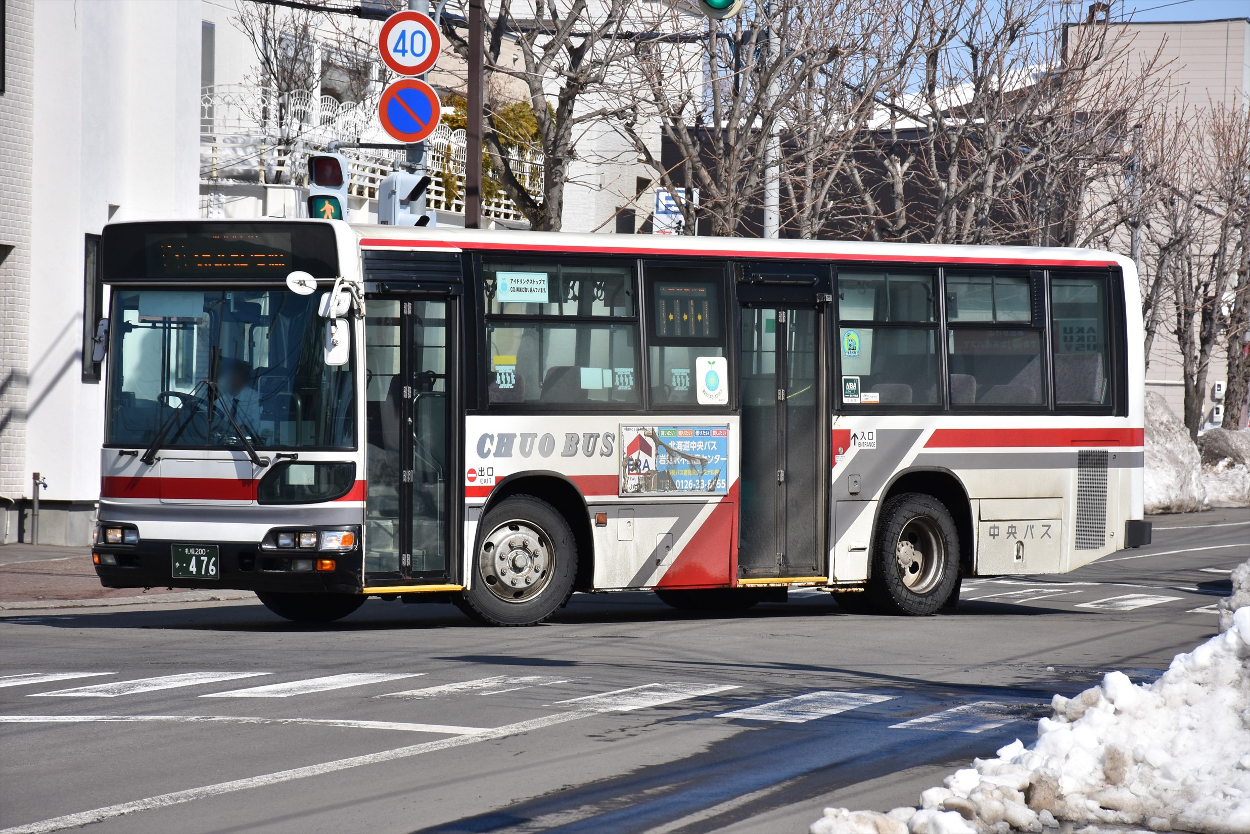 【北海道中央バス】札幌200か476 2025.10.30 北海道中央バス日野 2001年式引退済み自社発注車 札幌200か476(北海道中央バス岩見沢営業所 2001年式 日野ブルーリボンシティ/KL-HU1JJEA) 2021年3月 岩見沢市 撮影:OTB 2001年に北海道中央バスが新製導入した車両。 日野ブルーリボンシティの大型ショート車(KL-HU1JJEA)を導入した事業者は少なく、特に乗合仕様は北海道中央バスが唯一の導入例であった。 新製配置は白石営業所で、札幌市交通局から委譲されたタイミングで配属された。 その後、岩見沢営業所へ転属したが、2023年9月に解体されている。