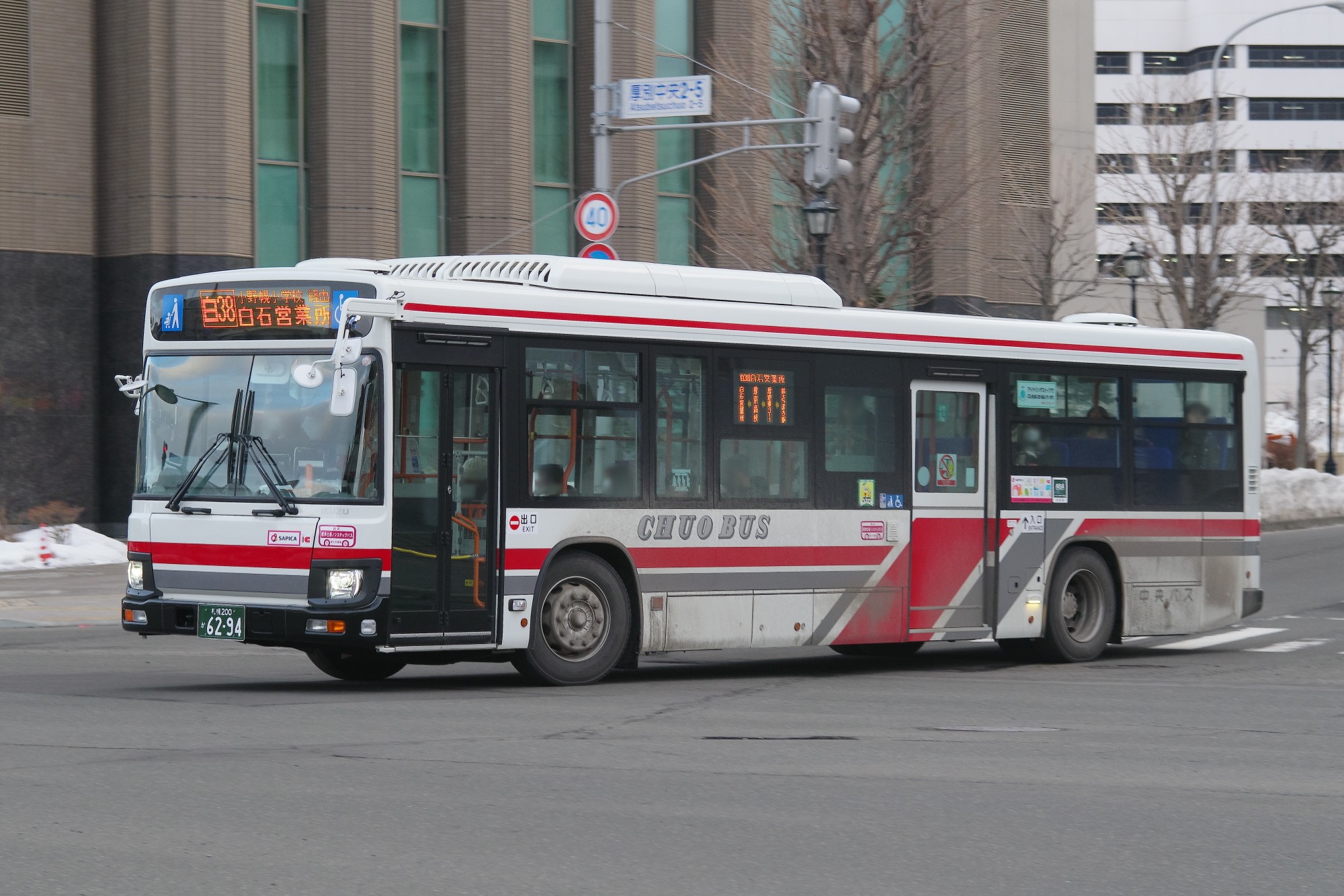 【北海道中央バス】札幌200か6294 2026.03.02 いすゞ北海道中央バス 2026年式いすゞ自社発注車 札幌200か6294(北海道中央バス白石営業所 2026年式 いすゞエルガ/2TG-LV290Q4) 2026年3月 札幌市厚別区 撮影:MAPBUS 2026年1月に北海道中央バスが新製導入した車両。 2025年夏の導入車からの変更点として、今回から前面行先表示機横などにベビーカー対応のピクトグラムが張付けられるようになった点、座席モケット柄が変更された点などが挙げられる。 白石営業所には同時期に5台(6294~6298)のいすゞエルガが配置された。