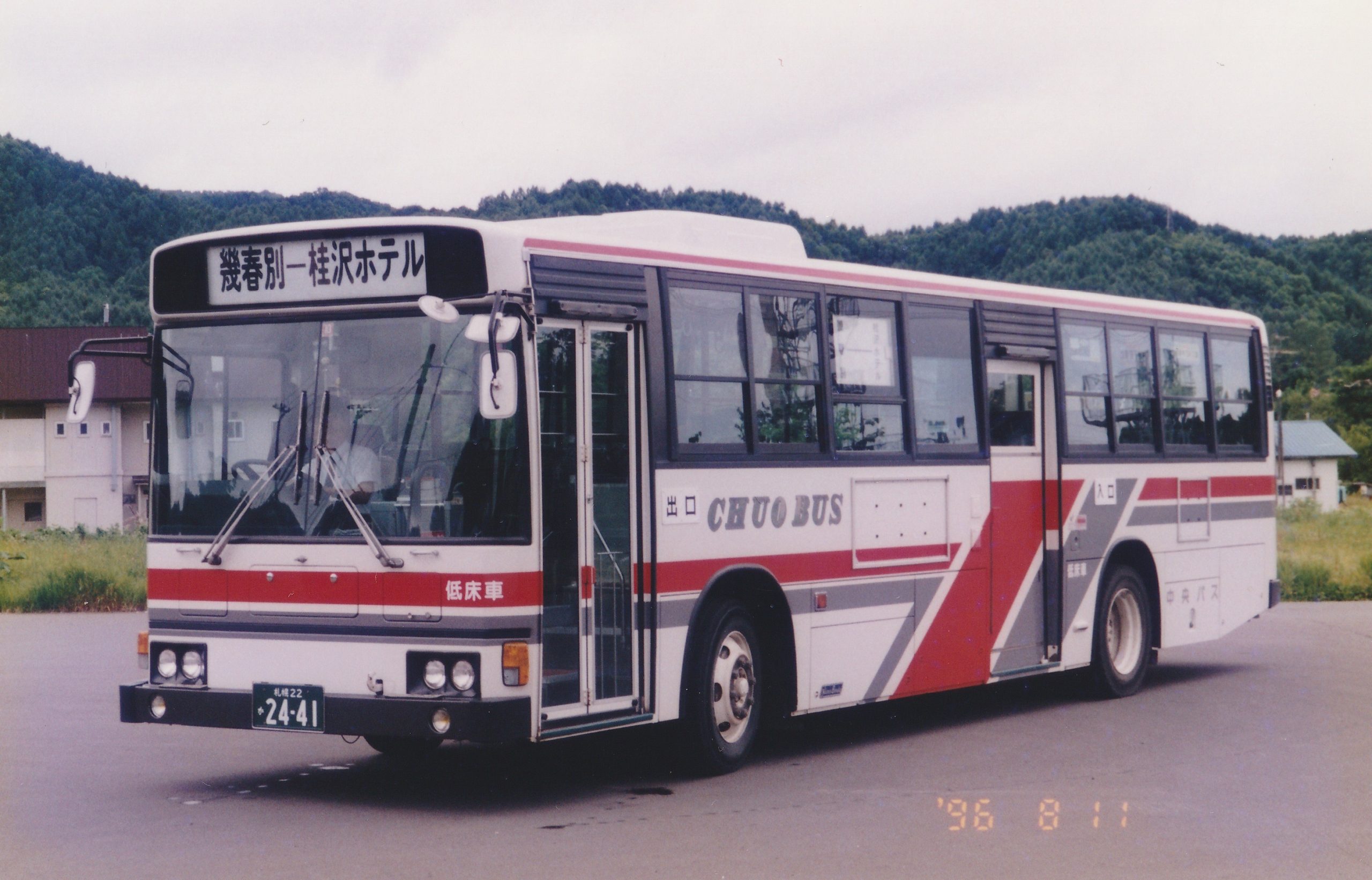 【北海道中央バス】札幌22か2441 2025.11.23 北海道中央バス日野 1994年式引退済み自社発注車 札幌22か2441(北海道中央バス平岡営業所 1994年式 日野ブルーリボン/U-HU2MMAA) 1996年8月 三笠市 撮影:kido82009 1994年に北海道中央バスが新製導入した車両。 新製配置は岩見沢営業所。 当時、空知エリアに新製配置された車両は「空知仕様」と呼ばれ、二段窓・中扉引戸・標準尺という札幌エリアとは異なる仕様であった。 のちに平岡営業所へ転属した。2013年1月に解体されている。 以下の画像はラッピング準備中の同車。 側面が白く塗られた状態となっており、この後ラッピングが施された。 2009年9月 許可を得て撮影 撮影:OTB