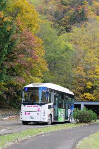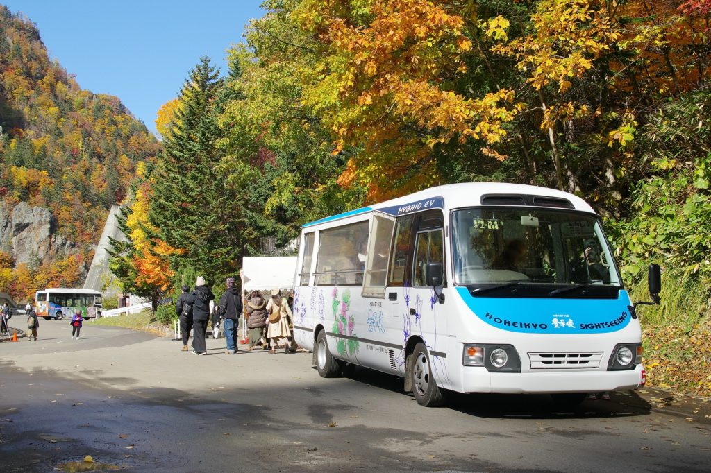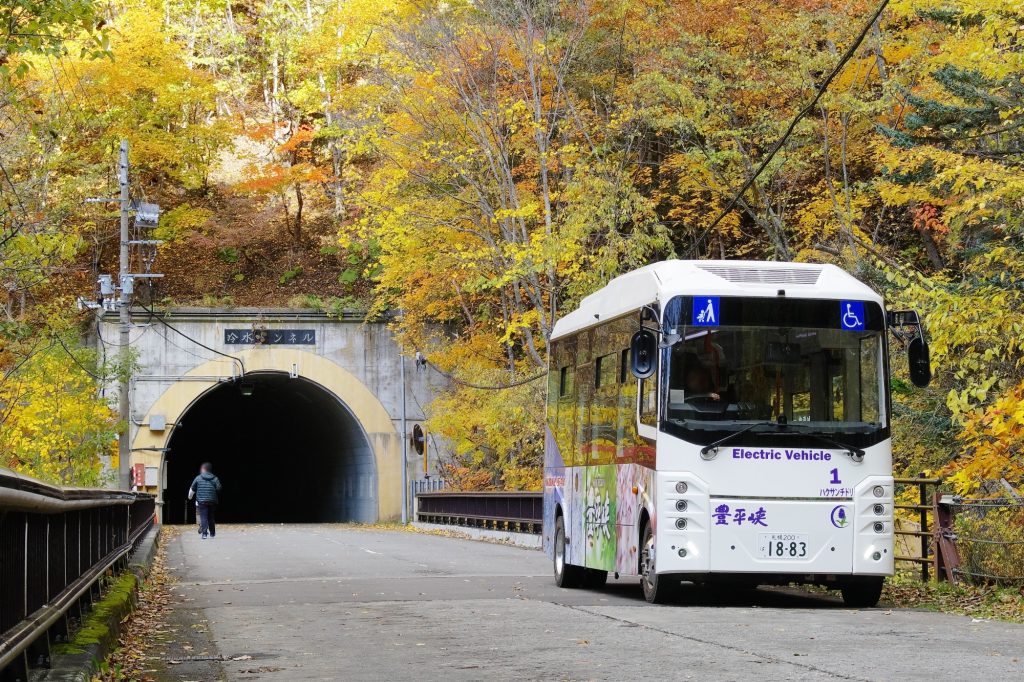 札幌の奥座敷とも呼ばれる定山渓のさらに奥地にある豊平峡ダムでは、観光客の見学のために電気バスが運行されている。