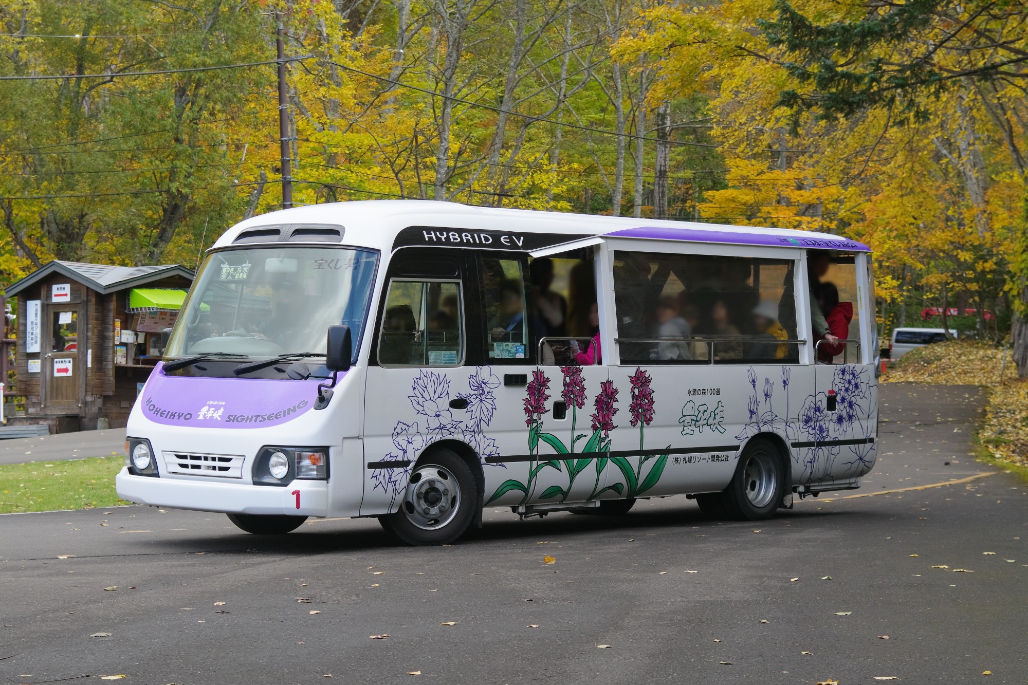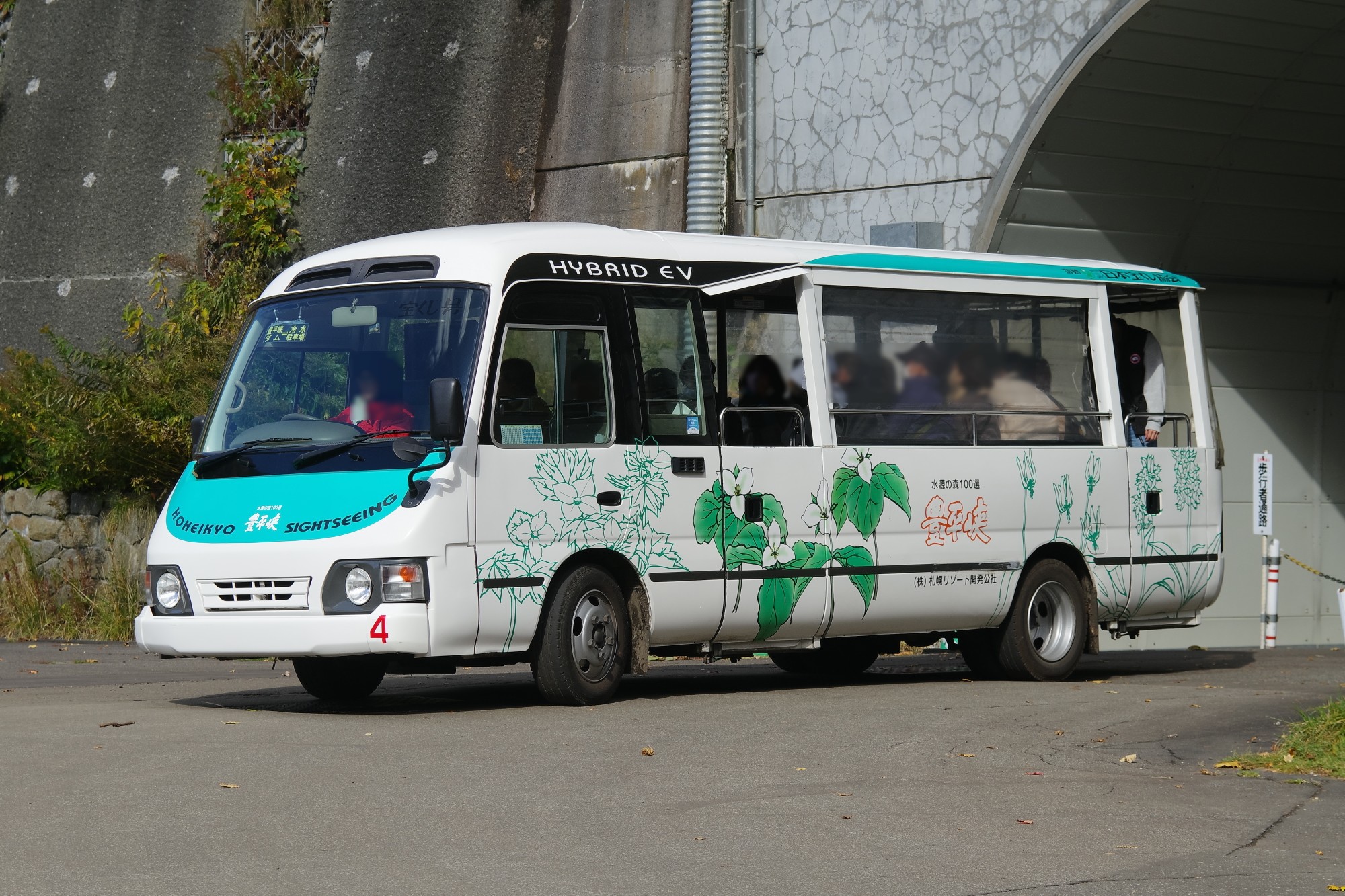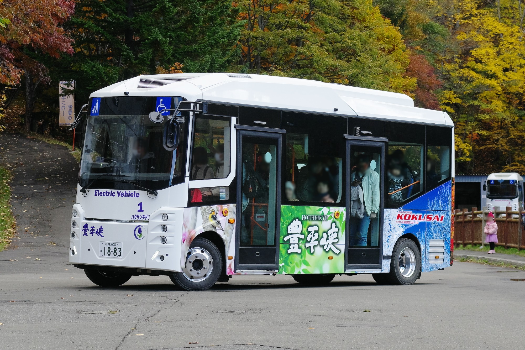 札幌の奥座敷とも呼ばれる定山渓のさらに奥地にある豊平峡ダムでは、観光客の見学のために電気バスが運行されている。
