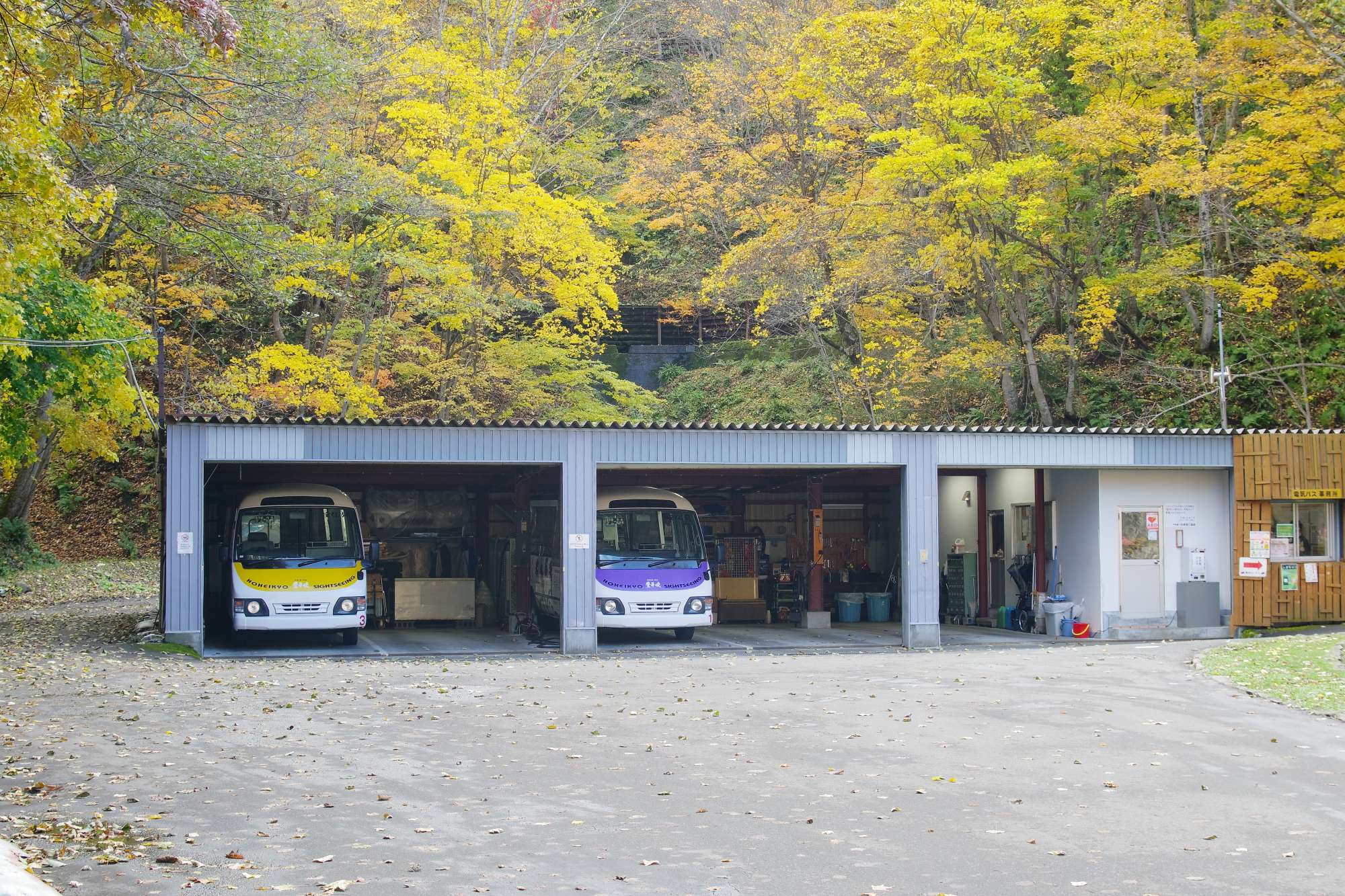 豊平峡ダムへのアクセスはじょうてつバスを利用して豊平峡温泉まで向かった後、徒歩で電気バス乗り場のある駐車場へ向かうこととなる。