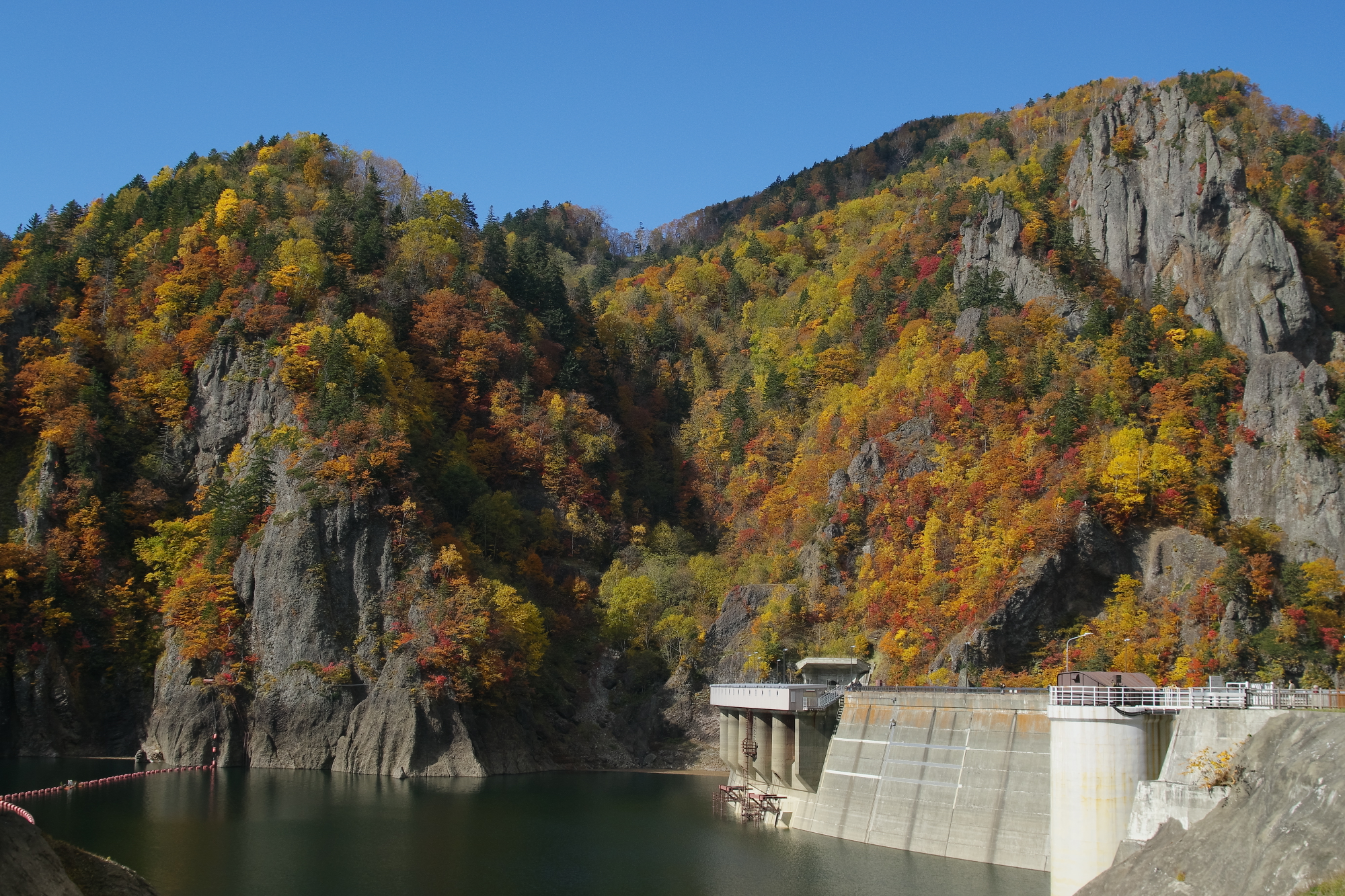 もうすぐシーズンオフを迎える豊平峡ダムは紅葉の見頃となっていた。