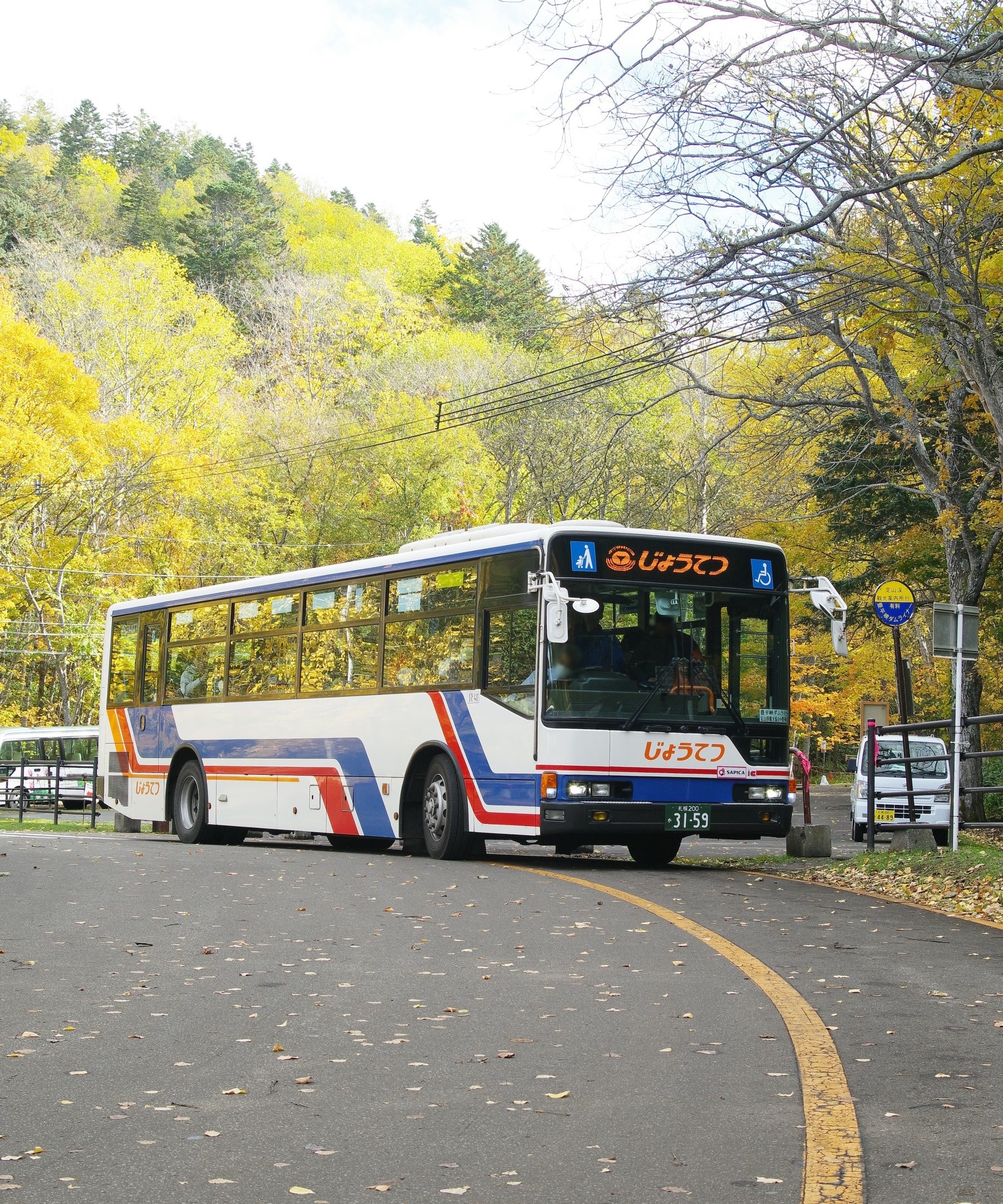 紅葉のシーズンとなる10月は上掲の画像の豊平峡ダムライナーが定山渓観光案内所から運行される。こちらは予約定員制となるため利用の際は事前に最新情報を収集したい。